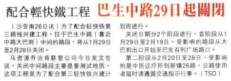 Sin Chew Daily: Road closures in Klang to make way for LRT3 works