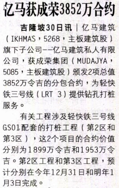 China Press: Ikhmas Jaya receives RM38.52 million contract