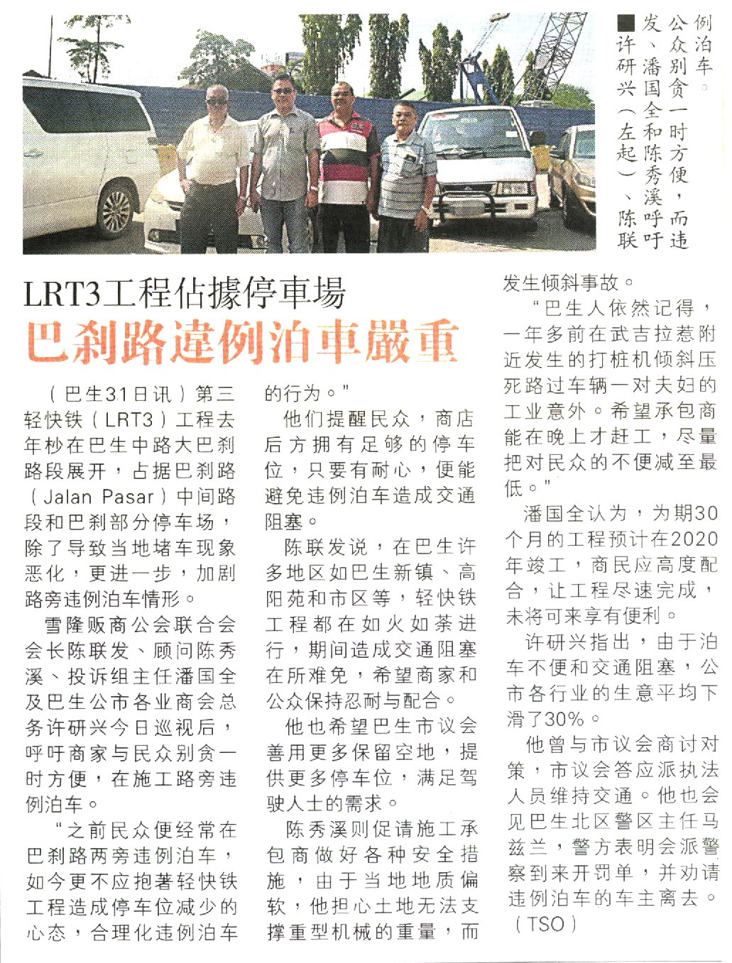 China Press: Hawker Union : Do not sidepark near LRT3 construction or it will cause more congestion