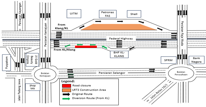 The diversions are implemented following the approval from Malaysian Public Works Department (JKR) and Majlis Perbandaran Shah Alam (MBSA).